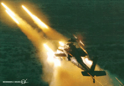 AGM-114 HellfireHellfire patří k nejdůležitějším raketám používaným současnými vrtulníky U.S.Army včetně útočné helikoptéry AH-64 Apache. Jméno Hellfire pochází z anglického HELicopter-Launched FIRE-and-forget missile (střela typu odpal-a-zapomeň vypouštěná z vrtulníku). Standardní výzbroj vrtulníku Apache tvoří palebná síla 16 těchto raket, primárně používaných proti tankům. Střela AGM-114 byla postavena na bázi zkušební technologie AGM-64 Hornet, vyvinuté v létech 1963-66 firmou North American Rockwell.